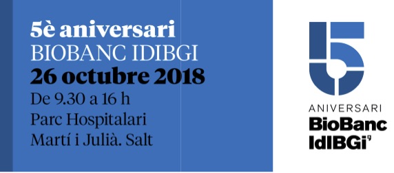 El biobanco del Institut d’Investigació Biomèdica de Girona (IDIBGI) celebra una jornada científica para celebrar su quinto aniversario el 26 de octubre en el Salón de Actos del Hospital Santa Caterina de Salt (Girona). La jornada será gratuita. Os podéis inscribir desde el siguiente enlace: http://idibgi.org/ca/5-anys-biobanc-idibgi